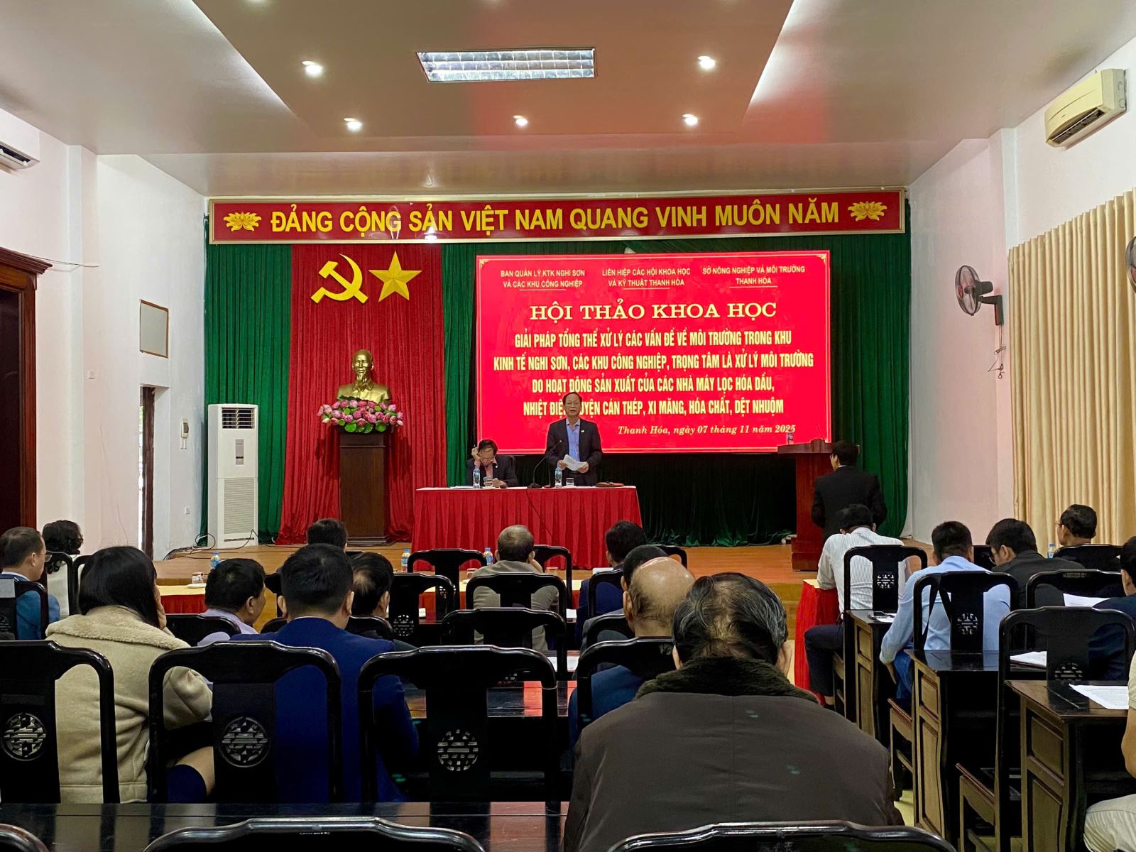 Sáng ngày 07/11/2025, Liên hiệp các Hội Khoa học và Kỹ thuật Thanh Hóa (Liên hiệp hội) phối hợp với Sở Nông nghiệp và Môi trường, Ban Quản lý Khu Kinh tế Nghi Sơn và các khu công nghiệp tổ chức hội thảo “Giải pháp tổng thể xử lý các vấn đề về môi trường trong Khu Kinh tế Nghi Sơn, các khu công nghiệp, trọng tâm là xử lý môi trường do hoạt động sản xuất của các nhà máy lọc hóa dầu, nhiệt điện, luyện cán thép, xi măng, hóa chất, dệt nhuộm”.