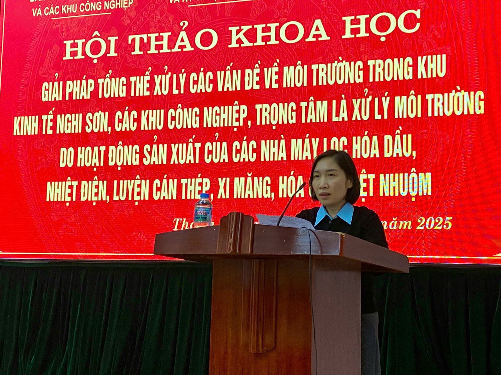 Các báo cáo tham luận gửi về và được trình bày tại hội thảo đã chỉ ra các nguy cơ ONMT trong Khu Kinh tế Nghi Sơn và các khu công nghiệp như: từ nhiệt điện, xi măng, cán thép… phát sinh ra bụi mịn, khí thải; từ công nghiệp hóa lọc dầu, hóa chất, dệt nhuộm… phát sinh ra nước thải có chứa hóa chất và kim loại nặng. Một số doanh nghiệp còn sử dụng công nghệ lạc hậu, thiếu trách nhiệm trong quản lý bảo vệ môi trường.