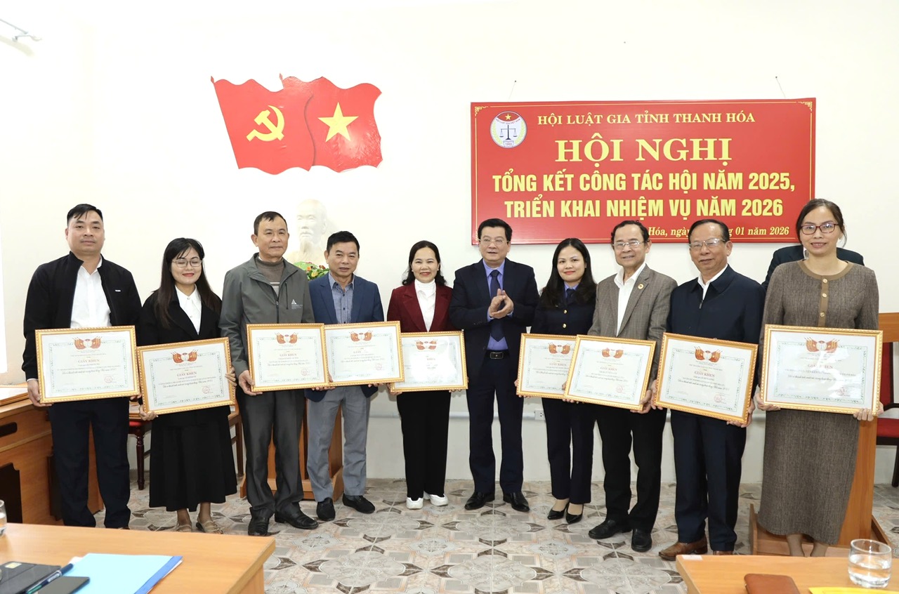 Kết luận hội nghị, đồng chí Trần Thế Kính, Tỉnh ủy viên, Bí thư Đảng ủy, Viện trưởng Viện KSND tỉnh, Chủ tịch Hội Luật gia tỉnh Thanh Hóa nêu rõ: Năm 2026, các cấp Hội Luật gia tỉnh Thanh Hóa tiếp tục tổ chức các hoạt động hội theo chức năng, nhiệm vụ quy định tại Điều lệ Hội và cơ quan có thẩm quyền giao, tổ chức thực hiện các nghị quyết Đại hội Hội Luật gia Việt Nam lần thứ XIV, Đại hội Hội Luật gia tỉnh Thanh Hóa lần thứ V, nhiệm kỳ 2024 - 2029, thi đua lập thành tích chào mừng Đại hội Đảng toàn quốc lần thứ XIV, bầu cử đại biểu Quốc hội khóa XVI và đại biểu Hội đồng Nhân dân các cấp nhiệm kỳ 2026 - 2031. Tham gia đóng góp ý kiến đầy đủ, chất lượng vào dự thảo các văn bản pháp luật, đề án, dự án của địa phương theo yêu cầu của Đoàn đại biểu Quốc hội tỉnh, Trung ương Hội và các cơ quan chức năng. Tổ chức tuyên truyền, phổ biến pháp luật cho cán bộ, công chức, viên chức, doanh nghiệp và Nhân dân, nhất là cán bộ, Nhân dân vùng sâu, vùng xa, vùng đồng bào dân tộc thiểu số và miền núi, trong đó tập trung vào các văn bản pháp luật quan trọng, mới ban hành. Mở rộng, nâng cao chất lượng công tác tư vấn pháp luật tại văn phòng; tư vấn pháp luật, hỗ trợ pháp lý cho doanh nghiệp; tư vấn pháp luật, hỗ trợ pháp lý cho phạm nhân sắp chấp hành xong án phạt tù, chuẩn bị tái hòa nhập cộng đồng và các công tác khác theo quy định của Điều lệ Hội và cơ quan có thẩm quyền giao./.
