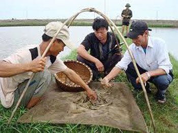Mô hình nuôi xen ghép với diện tích 19ha thuộc 6 hộ tham gia dự án đã thả giống tôm P15. Đây là giống tôm được chon lọc từ bộ giống, hiện tôm thả sinh trưởng và phát triển tốt.